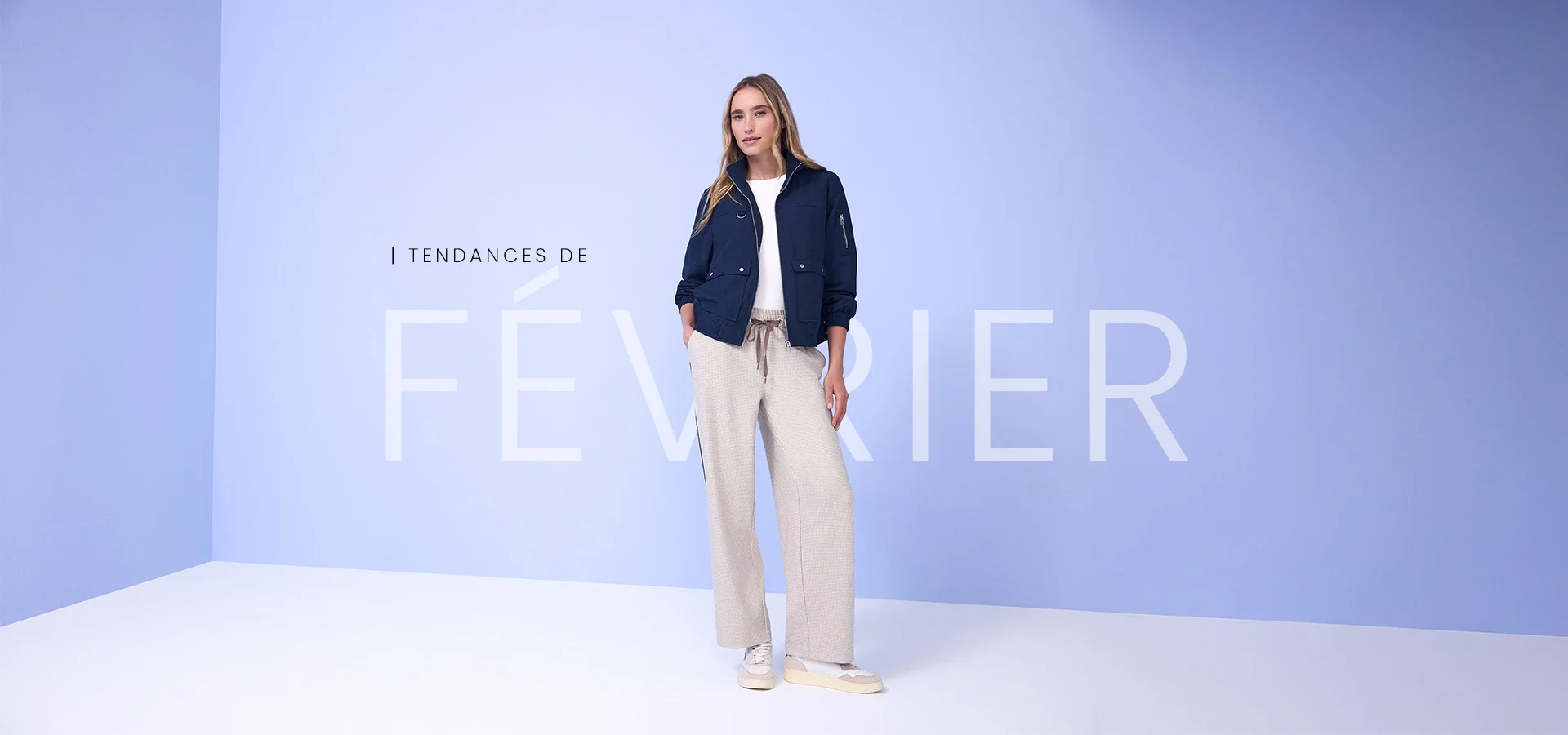 dans la collection de février, des tons sobres et discrets s'associent à des touches fraîches de jaune et de bleu pour apporter de la légèreté au look.