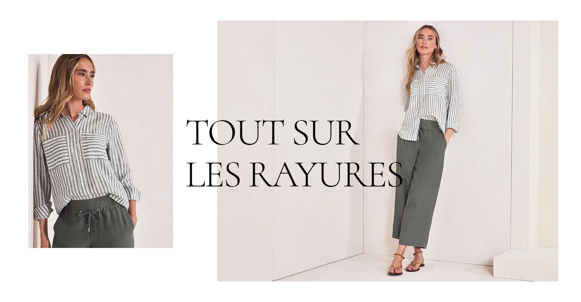 Chemisier à manches 3/4 en lin à rayures
