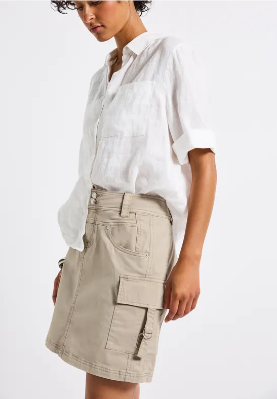 La jupe au look cargo de Street One pour femmes combine un design sportif avec une longueur féminine. Les poches latérales et plaquées ainsi que le look délavé lui confèrent un caractère décontracté. Le mélange de coton avec une part de stretch assure un grand confort.