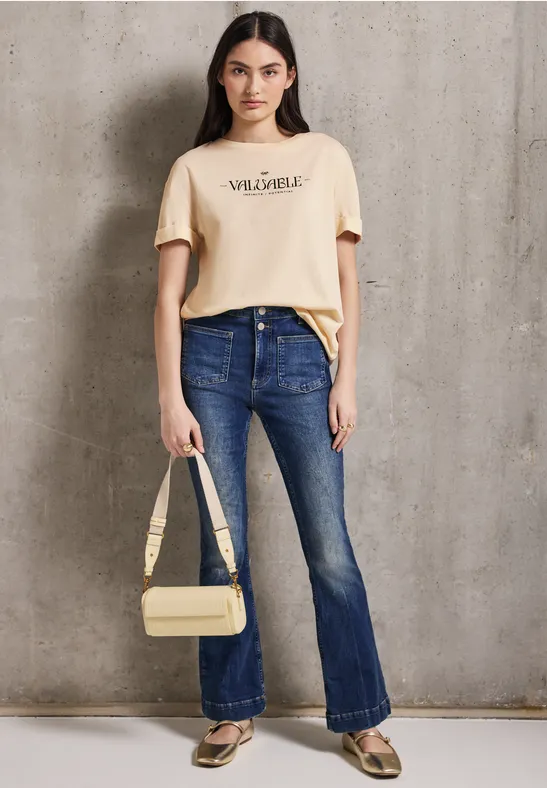 Un artwork de mots fait de ce t-shirt de Street One Studio pour femmes un accroche-regard dans ton look. Le t-shirt a un col rond et des manches courtes. Le doux mélange coton-modal confère au t-shirt un confort douillet.