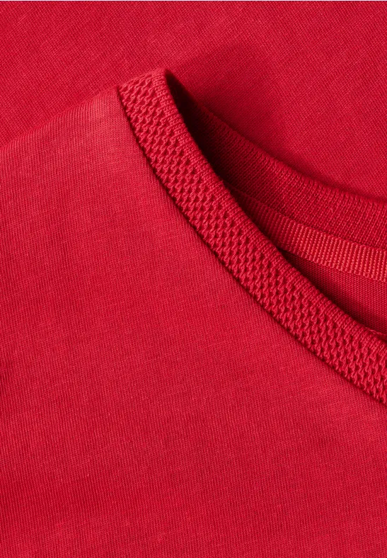 Ce t-shirt d'été sans manches de Street One pour femmes séduit par sa douce qualité de coton. Le bord côte structuré à l'encolure ronde apporte une touche moderne, tandis que la matière légèrement translucide assure une légèreté estivale. Parfait pour les looks décontractés !
